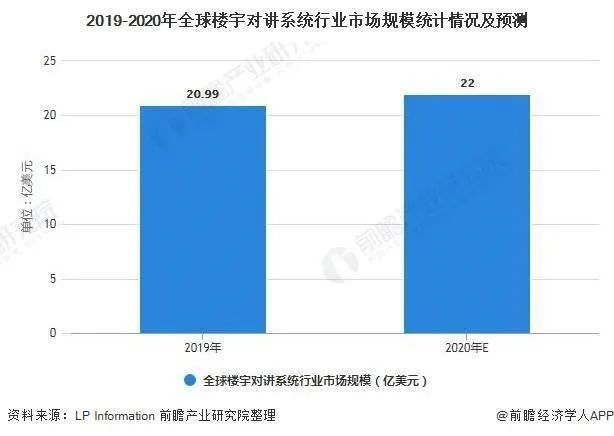 1、全球楼宇对讲系统技术逐渐发展,市场规模突破20亿美元